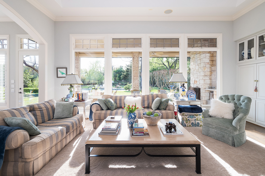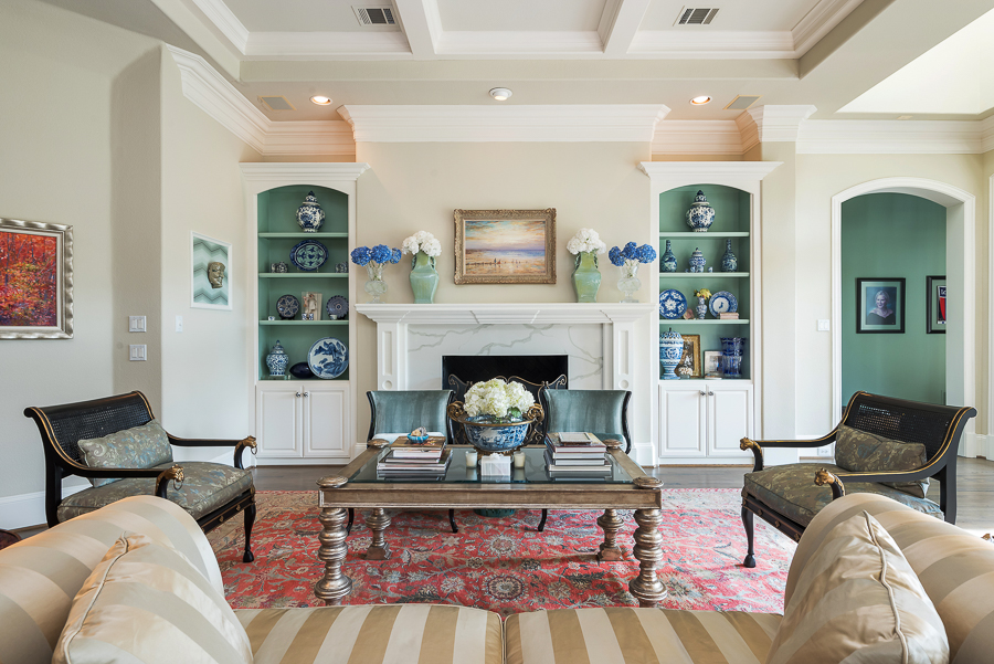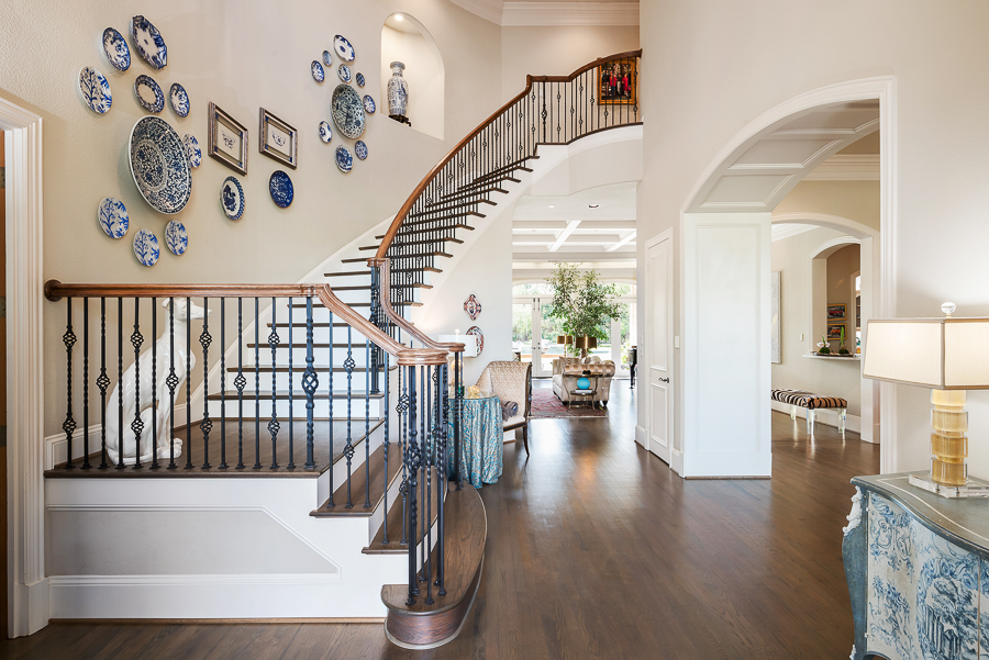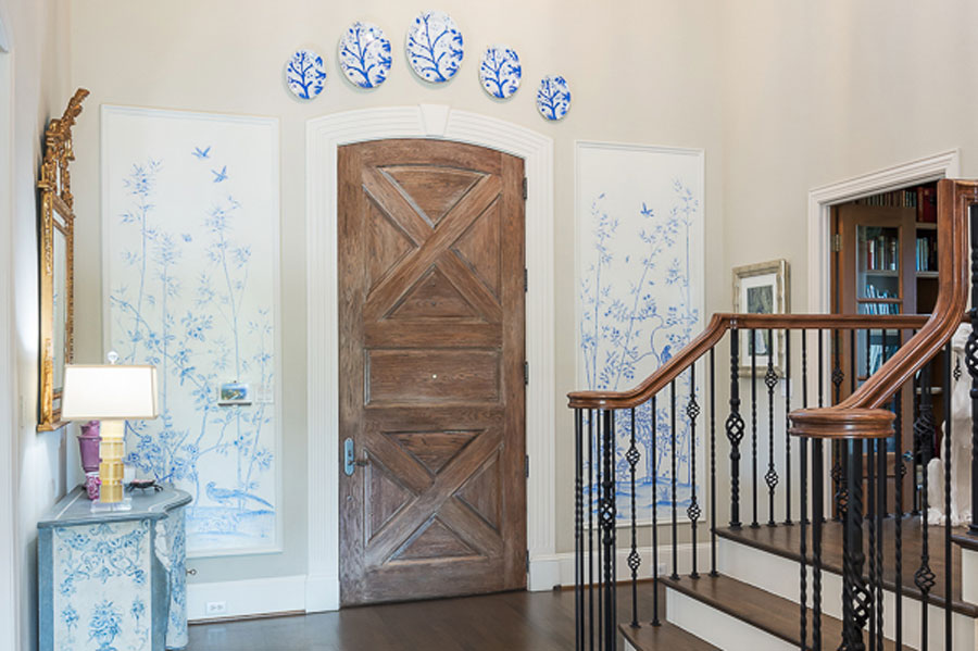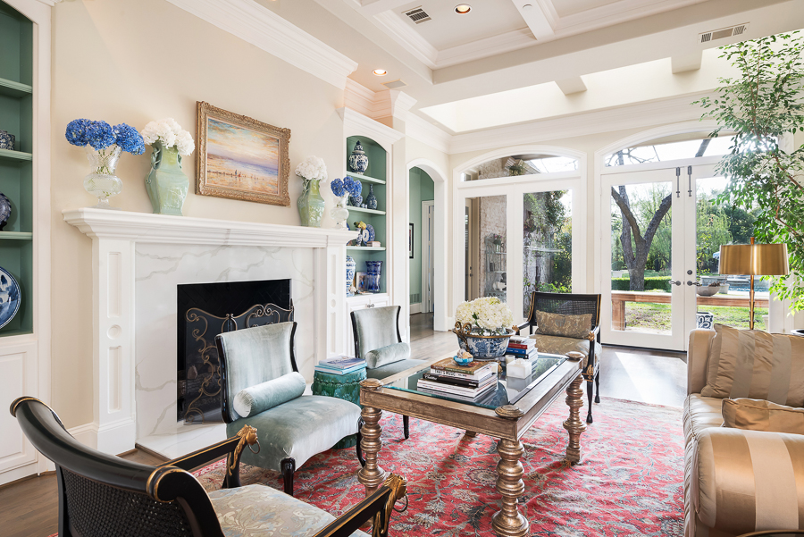 Welcome to our home! Here is what you will find on the main floor: formals, bar, elegant foyer with sweeping staircase, primary bedroom with luxurious en suite bath, library and adjoining dual office or nursery, loggia, safe room, chilled wine closet off pantry, cedar closet, main porch, gathering porch with motorized screens and wood-burning fireplace, side porch with outdoor shower & bath access, dog wash and turfed play area. Storage galore, including in the oversized three car garage.